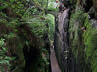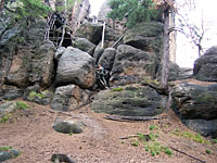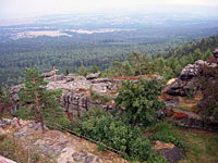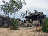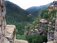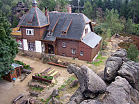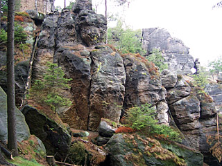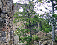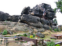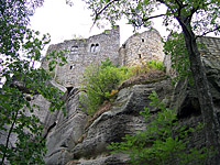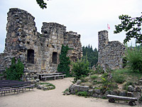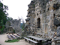 | Auf dem Berg Oybin, der die Form eines Bienenkorbes hat, wurde im 13. Jahrhundert ein Kloster und später eine Burg erbaut. Diese ist nach Jahrhunderten und diverser Bränden und Blitzeinschlägen noch teilweise als Ruine erhalten und dient einem Museum als Herberge. Daneben sind der Bergfriedhof, die Camera obscura und ein Berggasthof zu finden.
